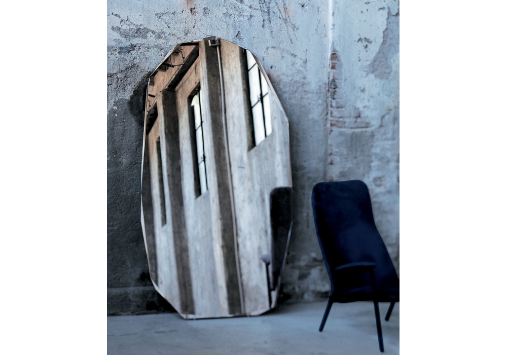 Mobil legno Catalogo Ego. The 5 millimeters depth of the glass complete the technical specs. Standing mirror irregularly shaped with faceted perimeter and special chamferings with variable depths and inclinations.