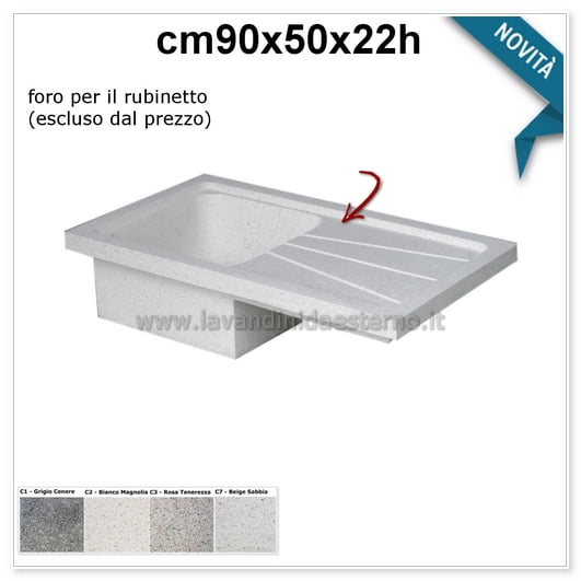 Tempistica di preparazione prevista. Lavello cucina acquaio in graniglia levigata 821. Lavello da giardino con sgocciolatoio pl307.