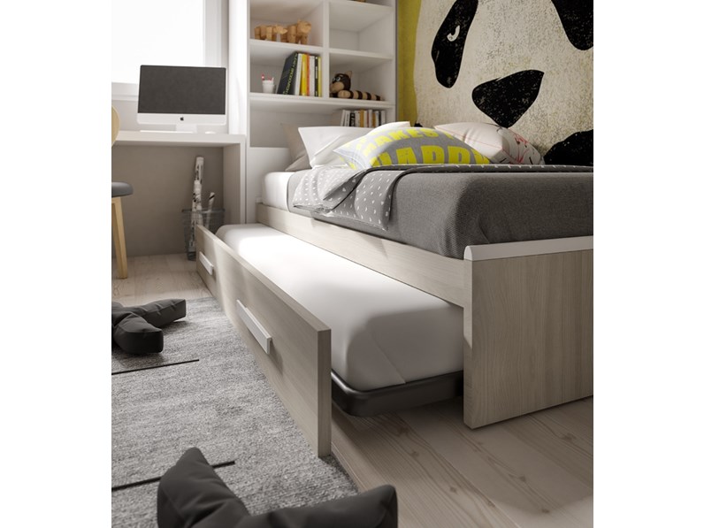 ART964R - Letto cameretta 80x190 singolo con secondo letto estraibile e testate personalizzabili 35600 ART864C - Letto cameretta 120x190 1piazza e mezza con cassettoni estraibili e testate personalizzabiliRete inclusa. Cameretta per ragazzi letto singolo S2 01. Letti singoli per la cameretta con la possibilità di aggiungere un secondo letto estraibile per gli ospiti.